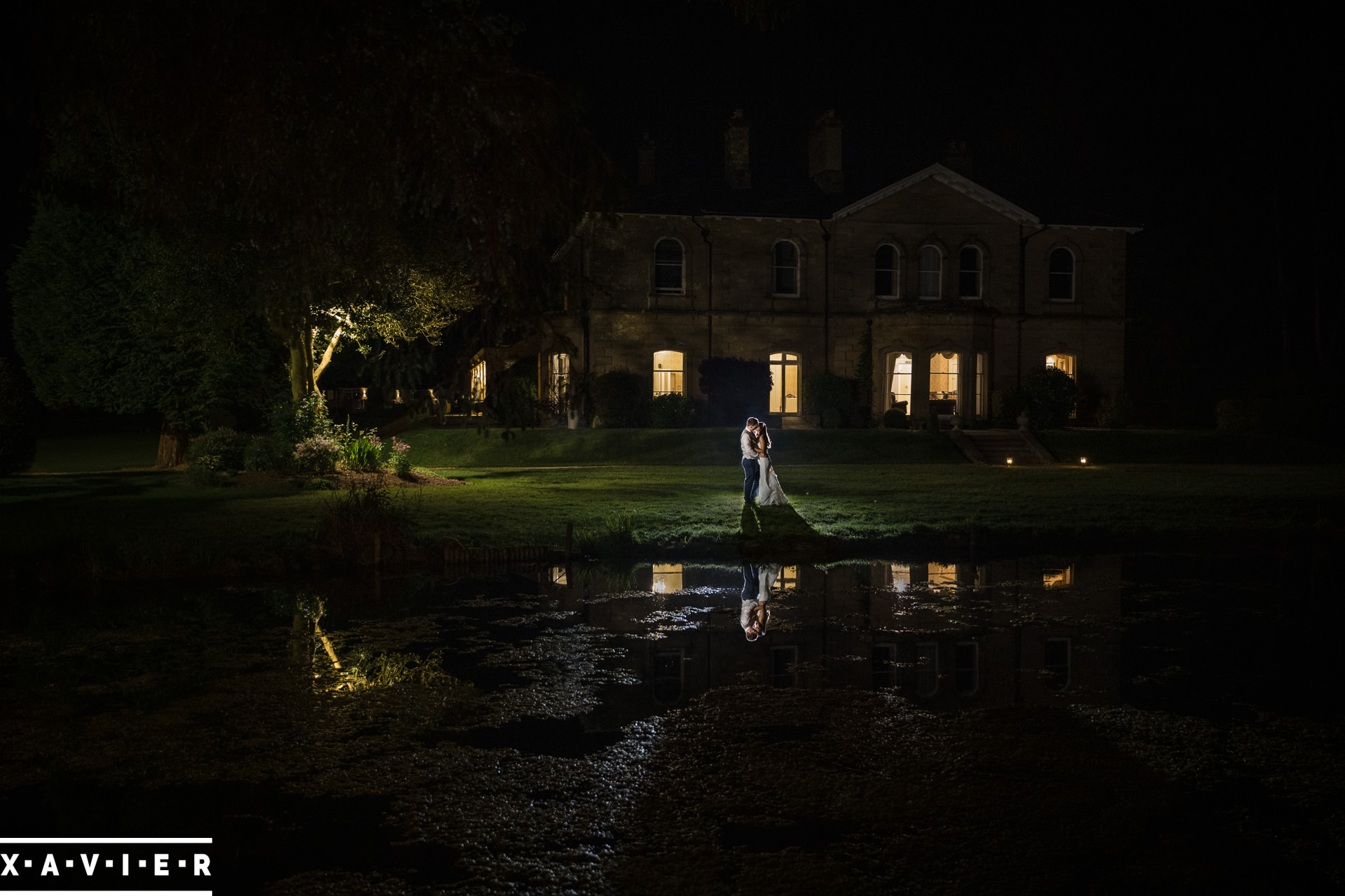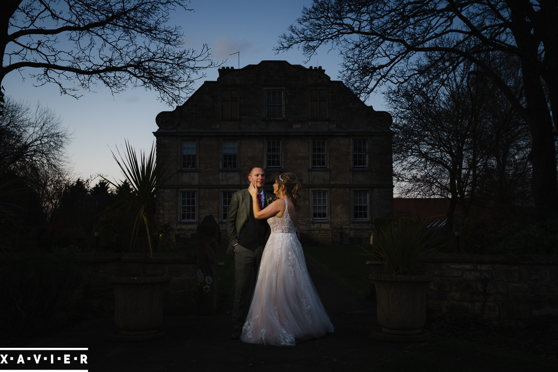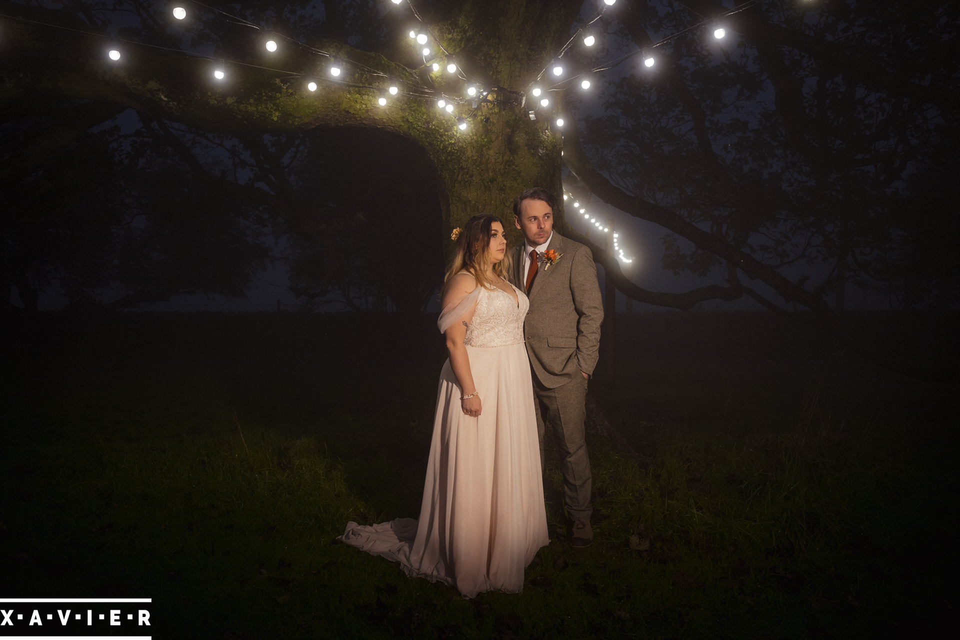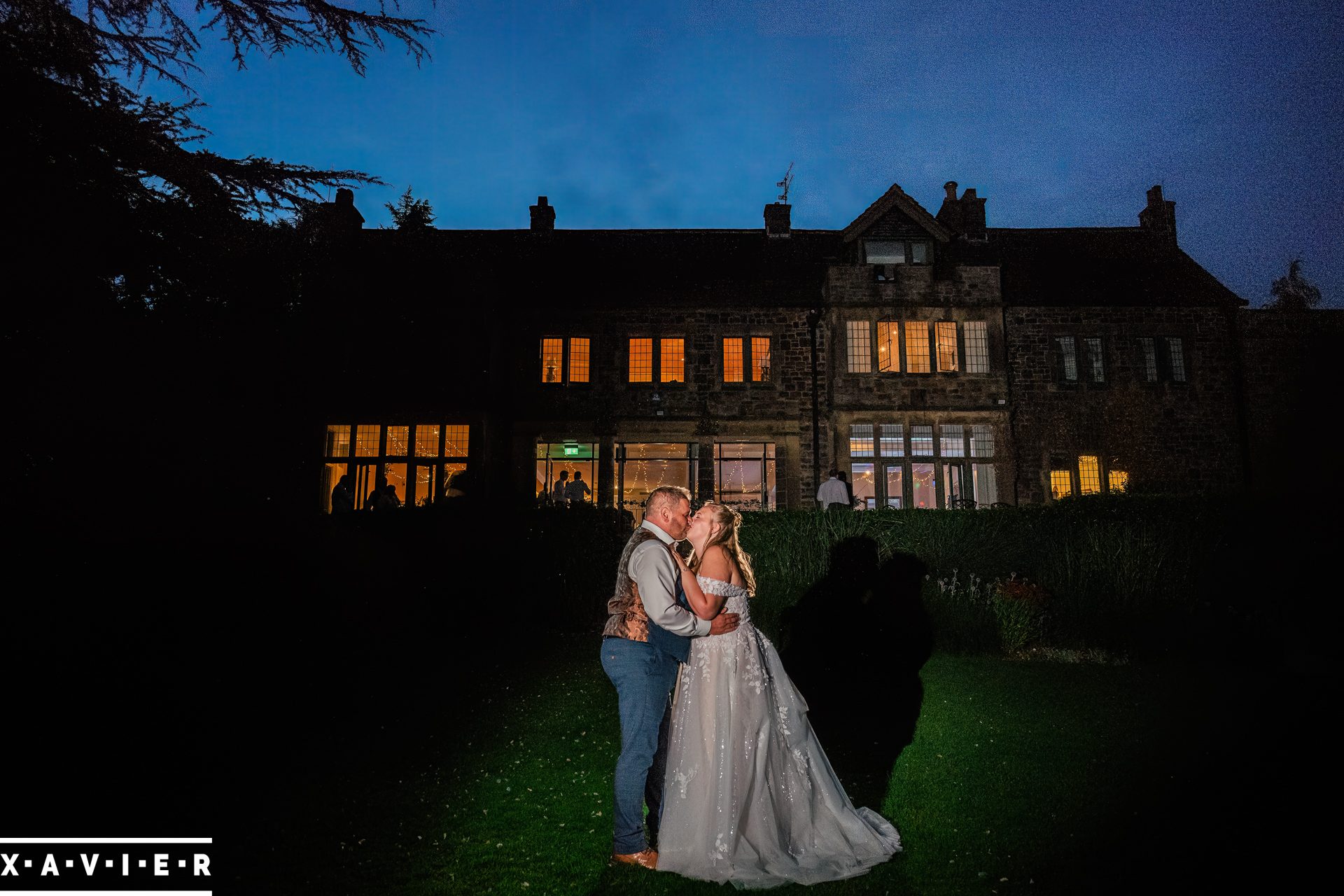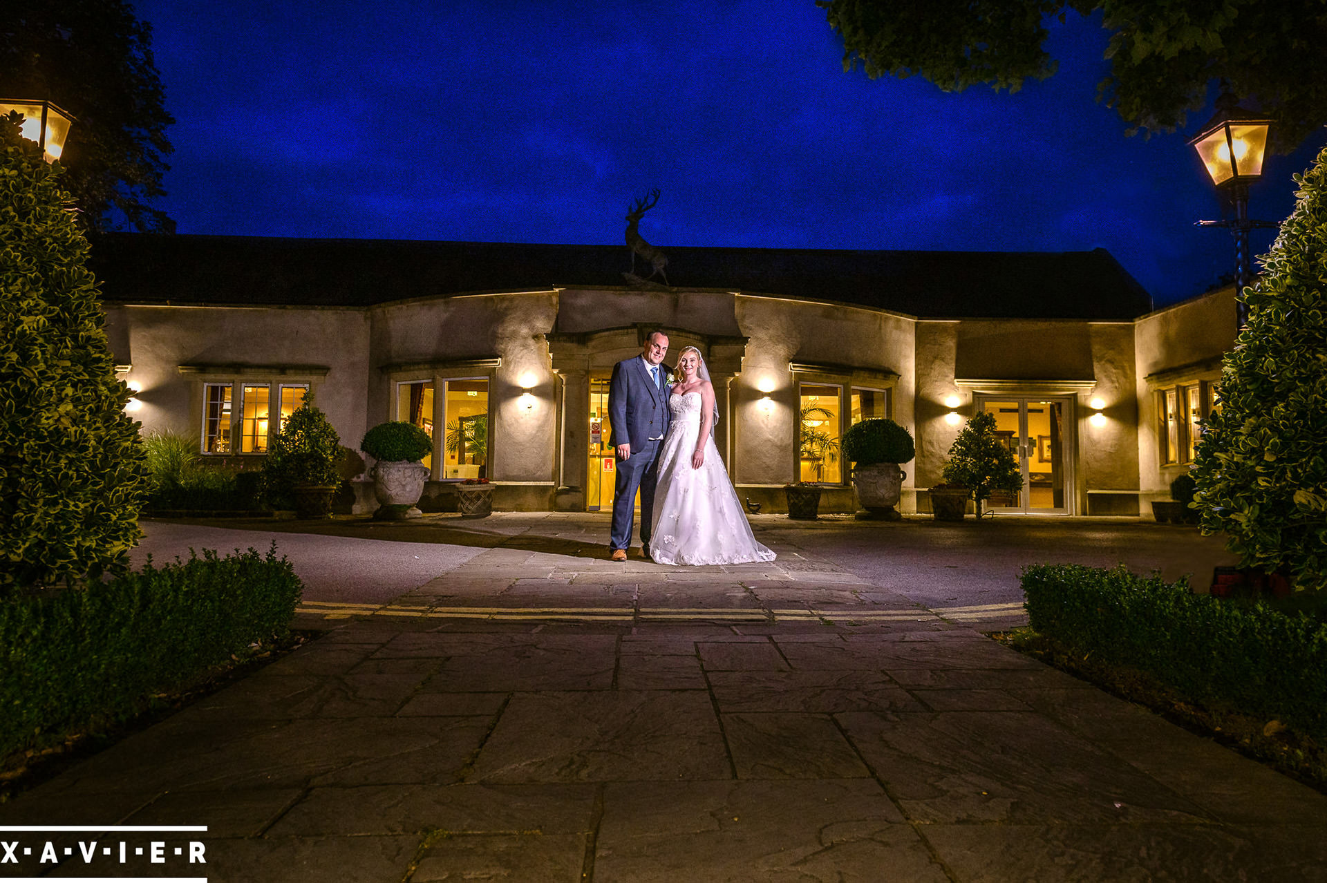 Whether your wedding day brings a stunning sunset, or a vibrant blue sky, when the light falls I'll direct you for dramatic nightime portraits