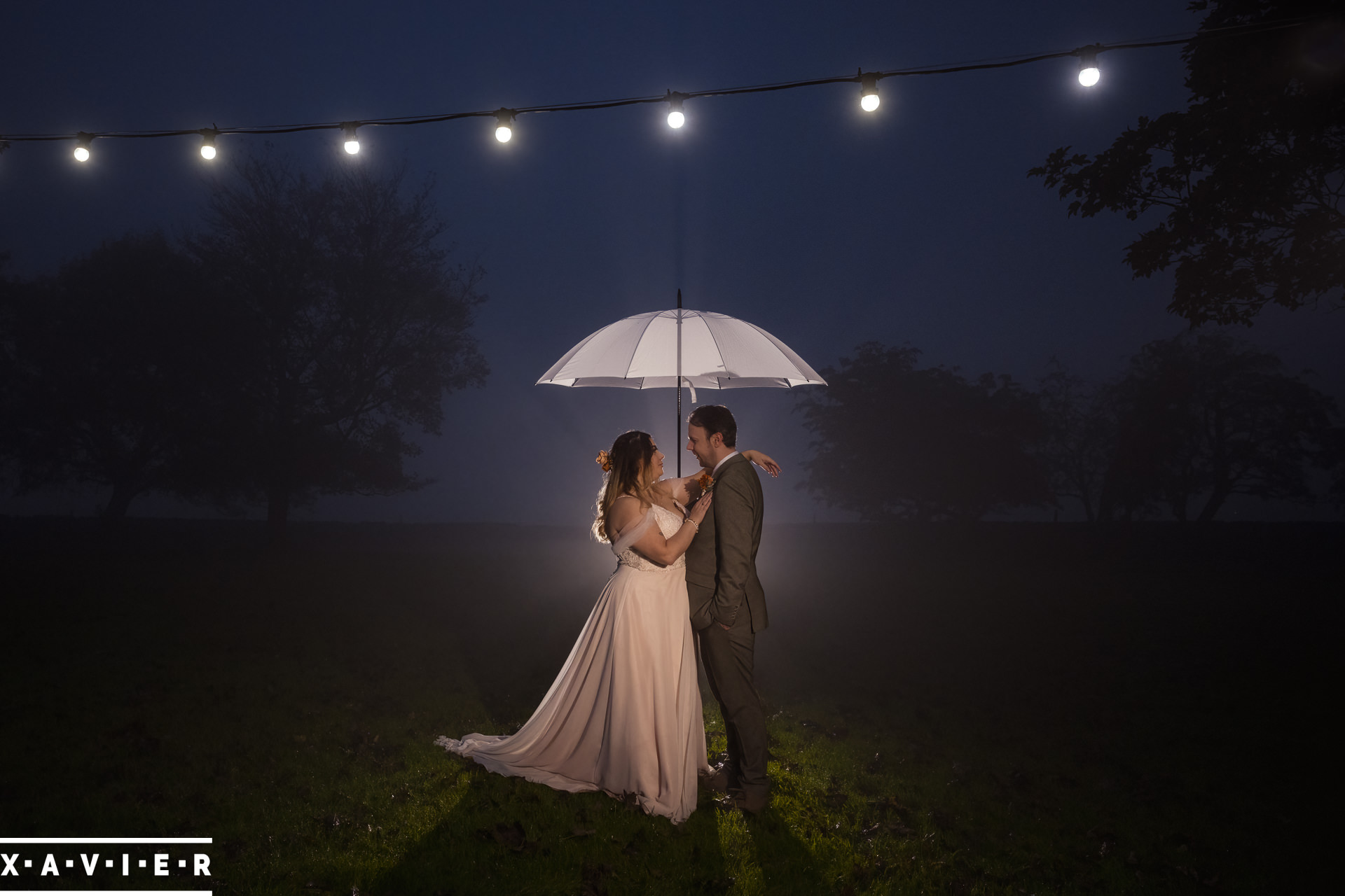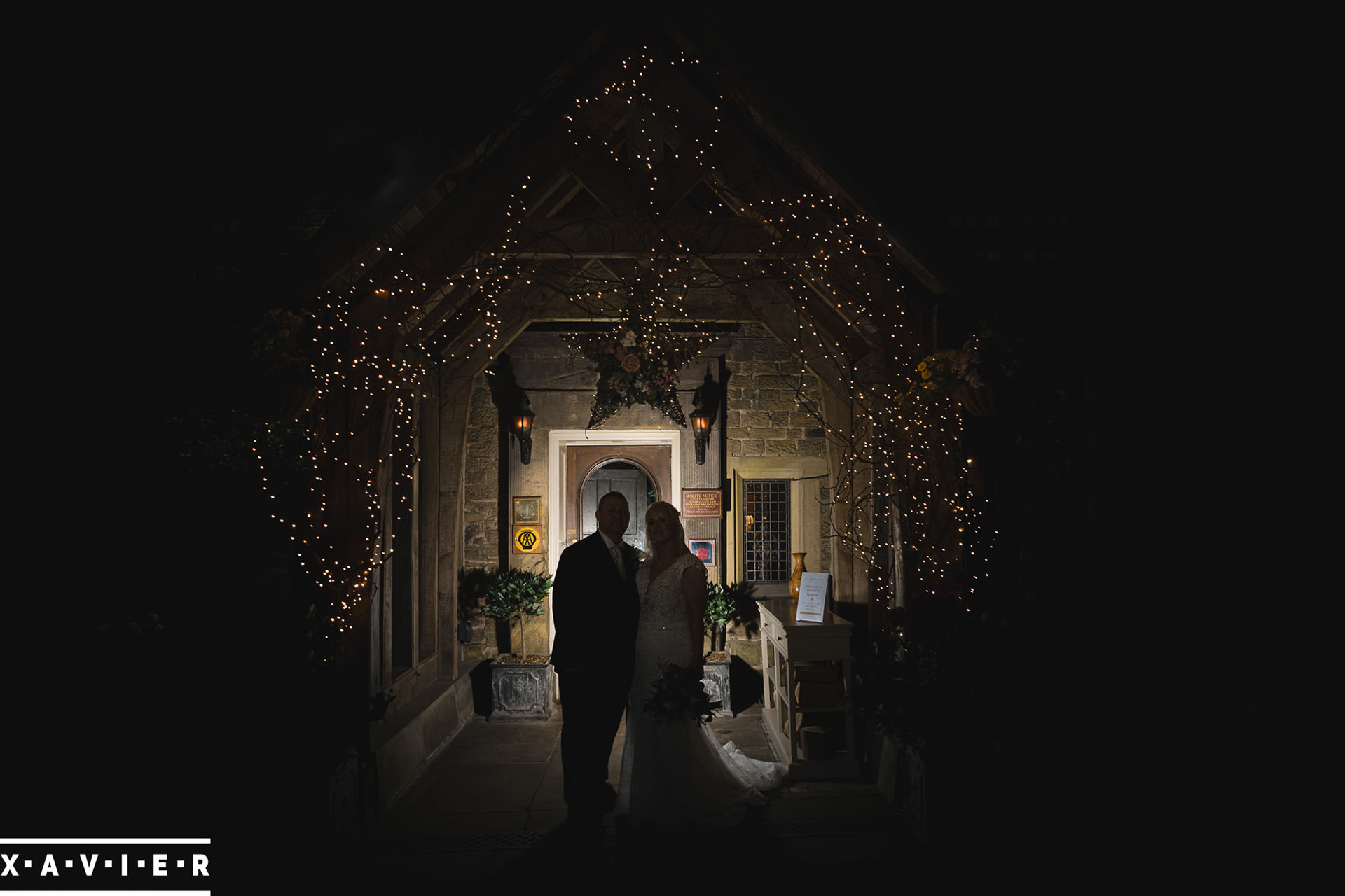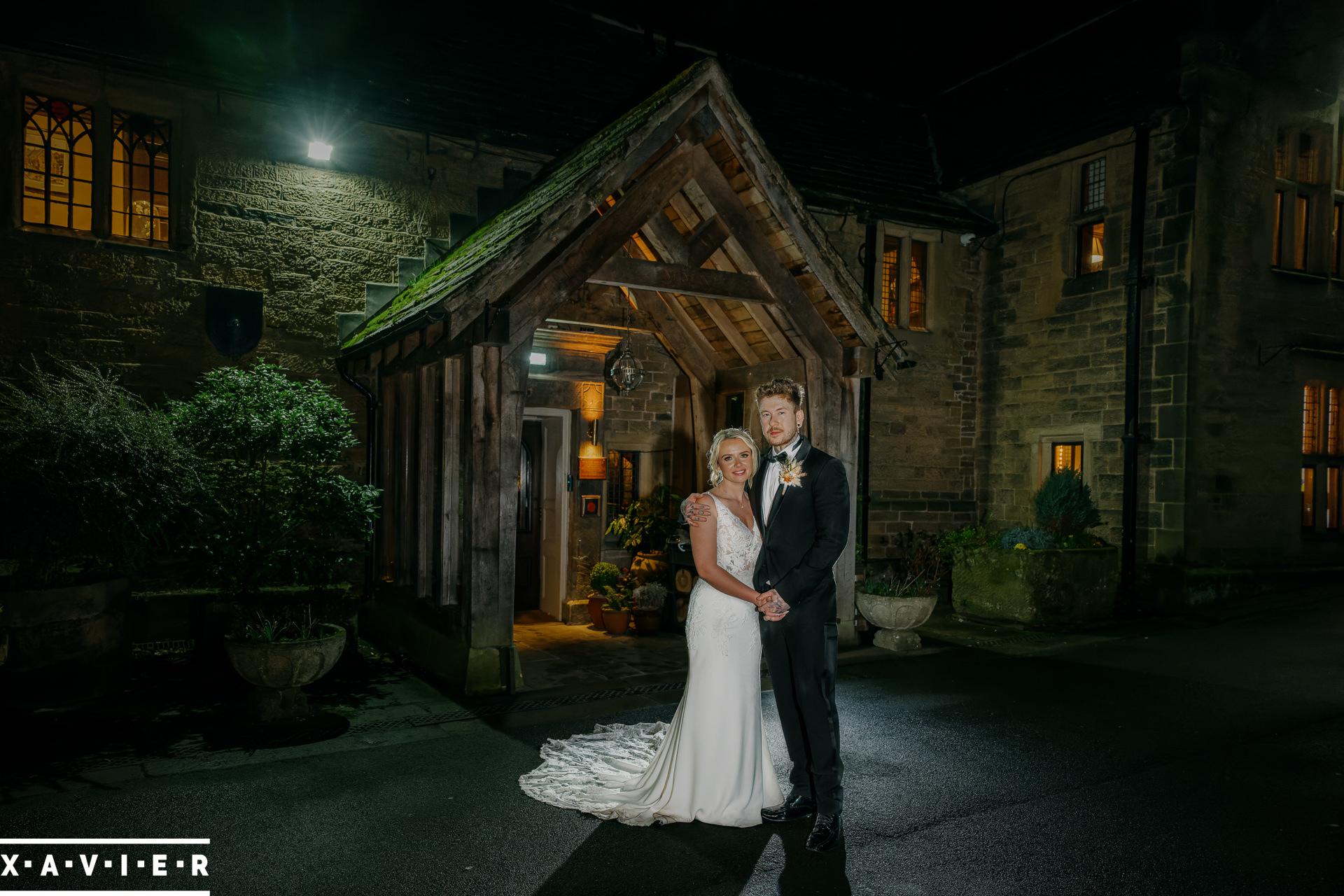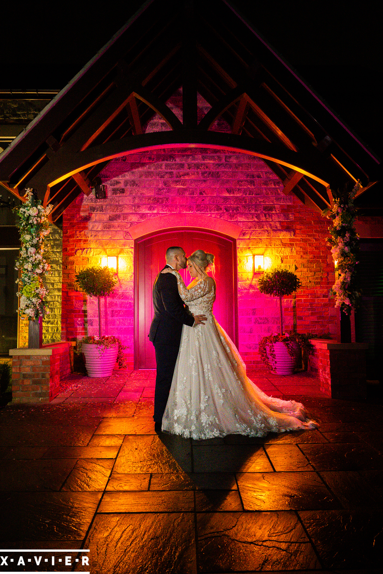 Whether your wedding day brings a stunning sunset, or a vibrant blue sky, when the light falls I'll direct you for dramatic nightime portraits