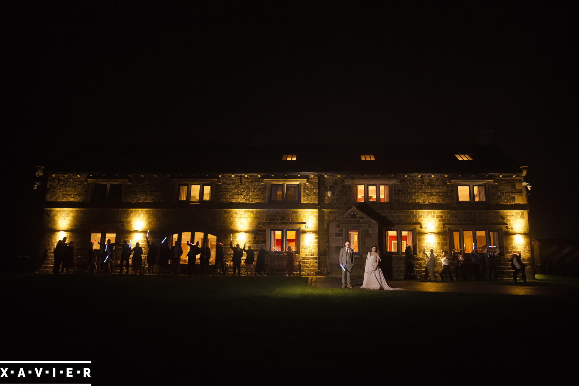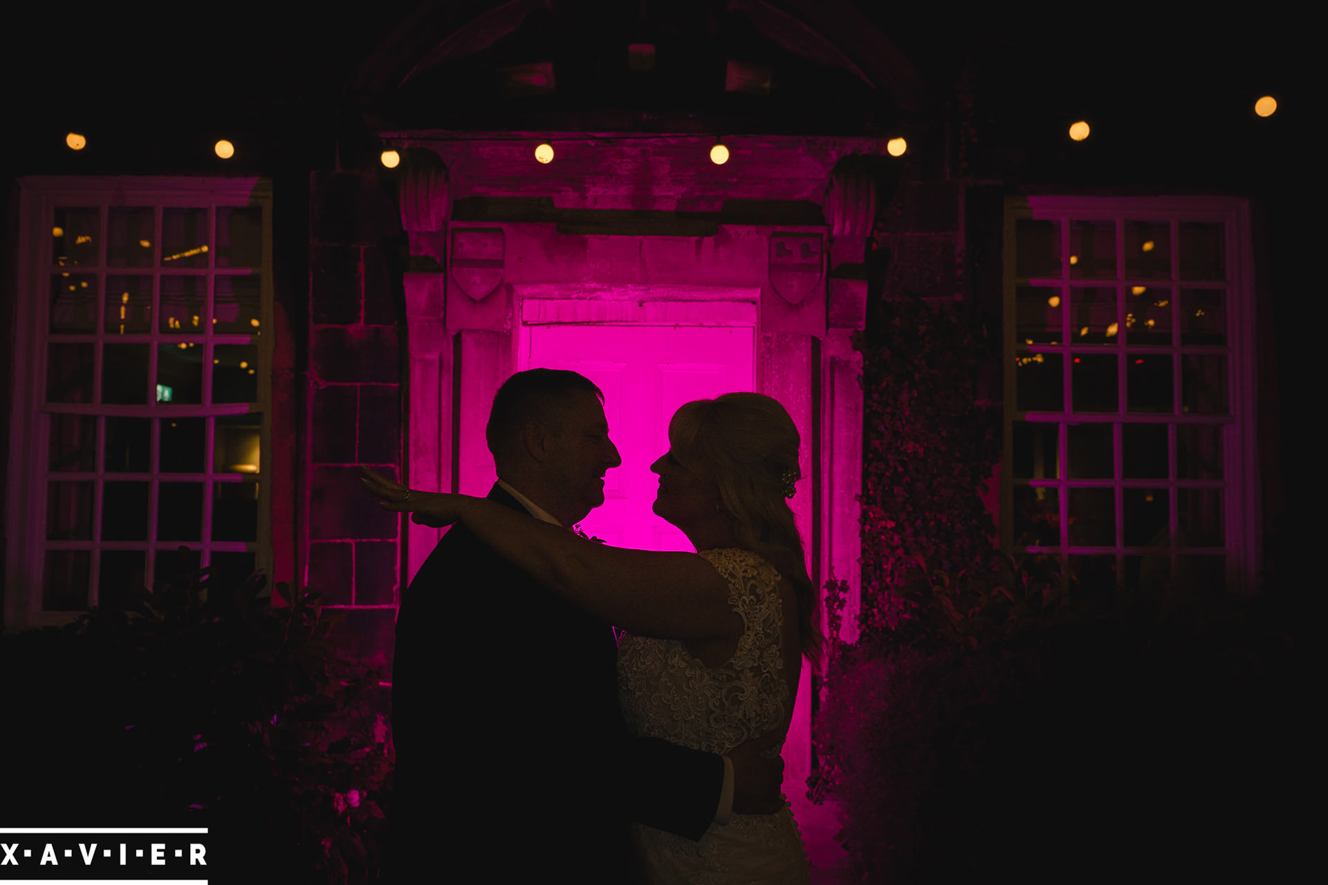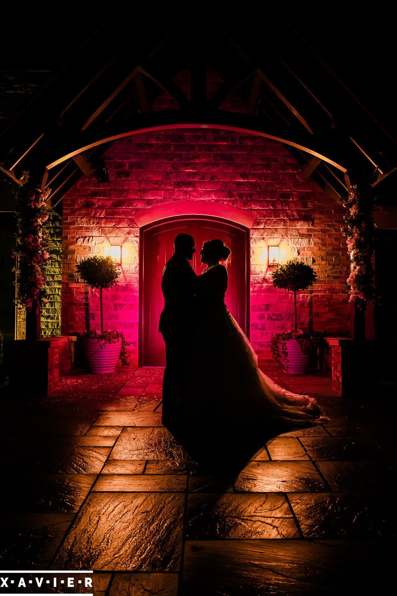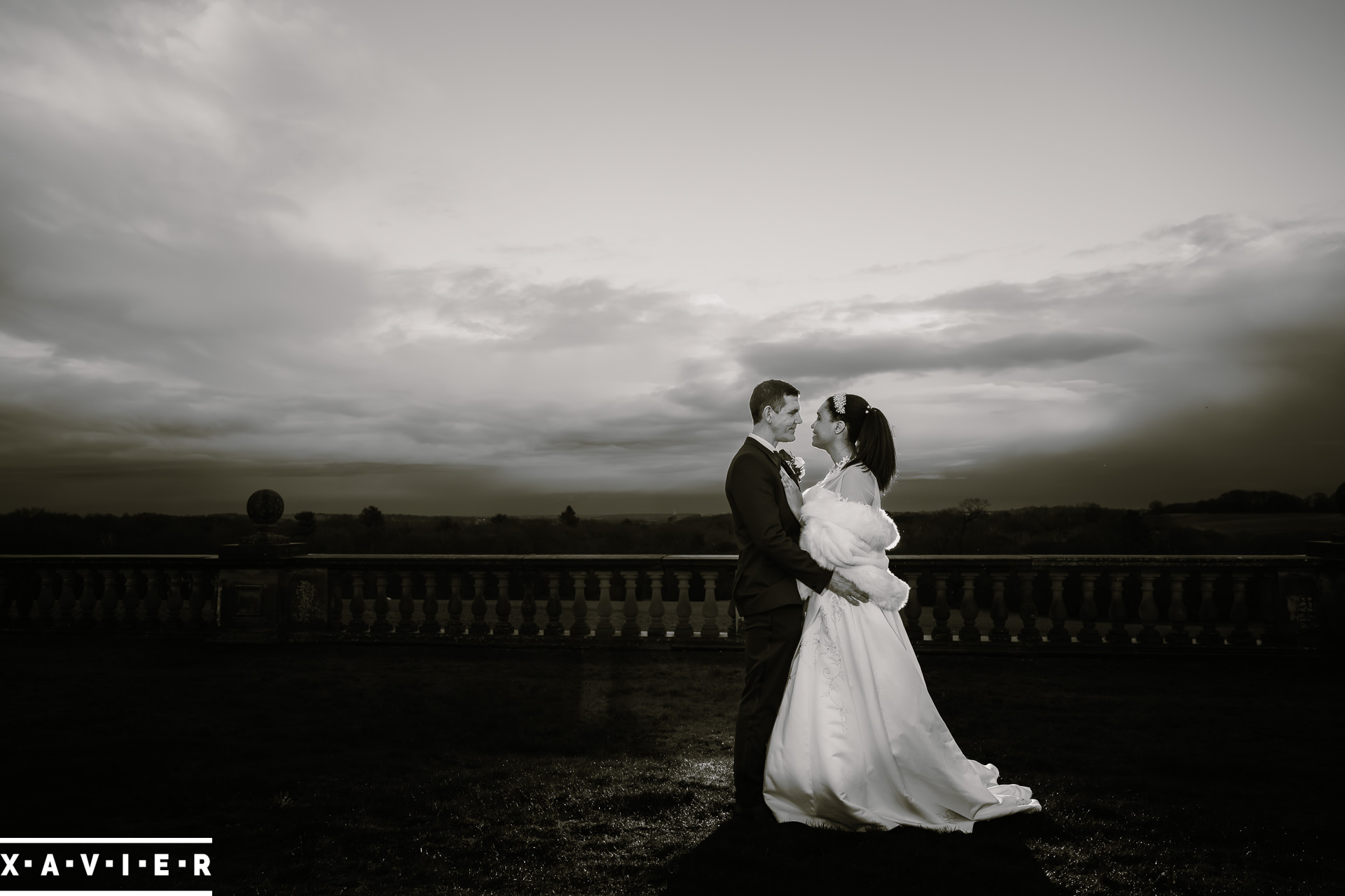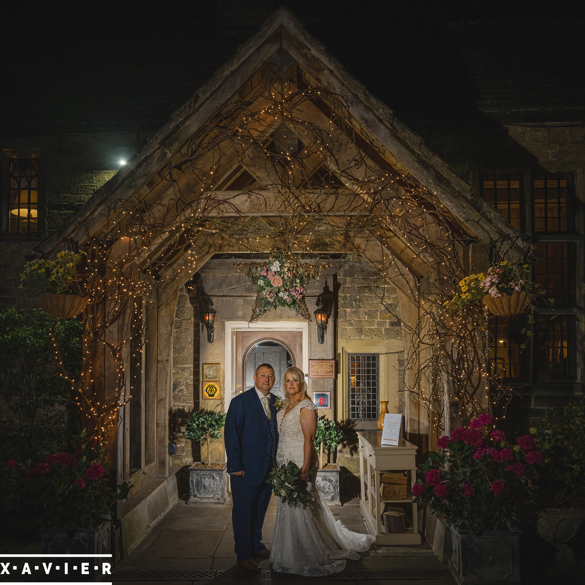 Whether your wedding day brings a stunning sunset, or a vibrant blue sky, when the light falls I'll direct you for dramatic nightime portraits