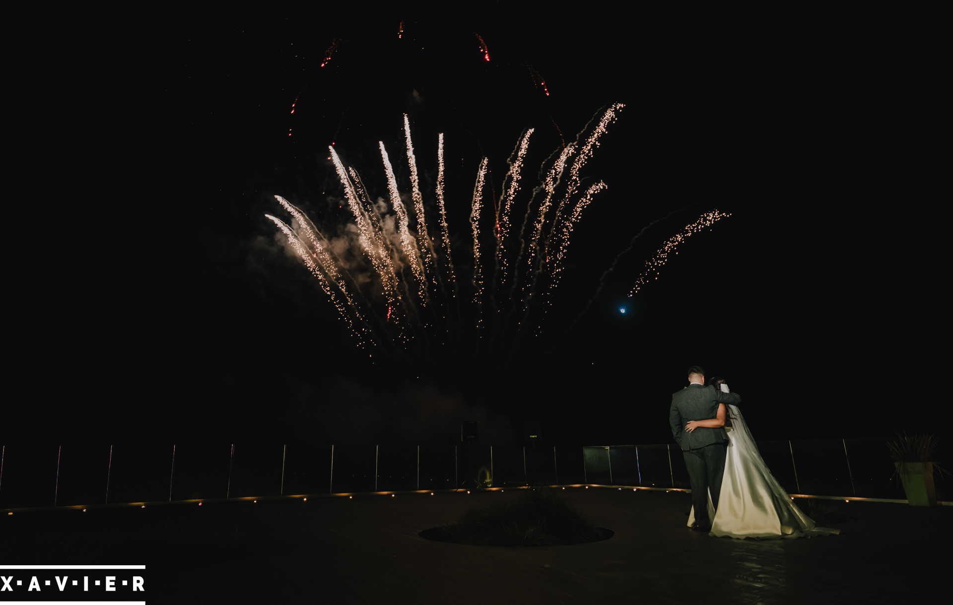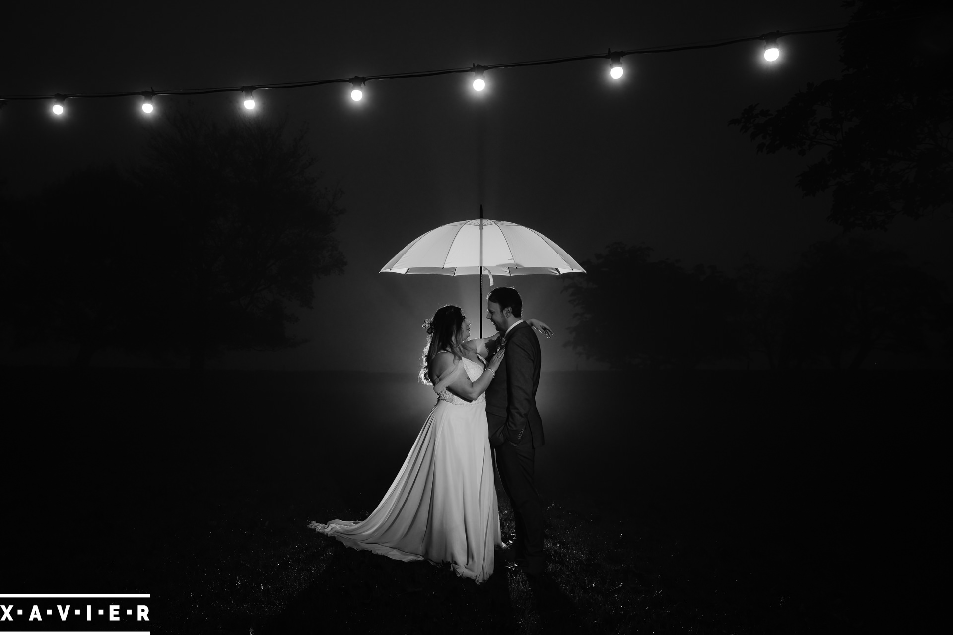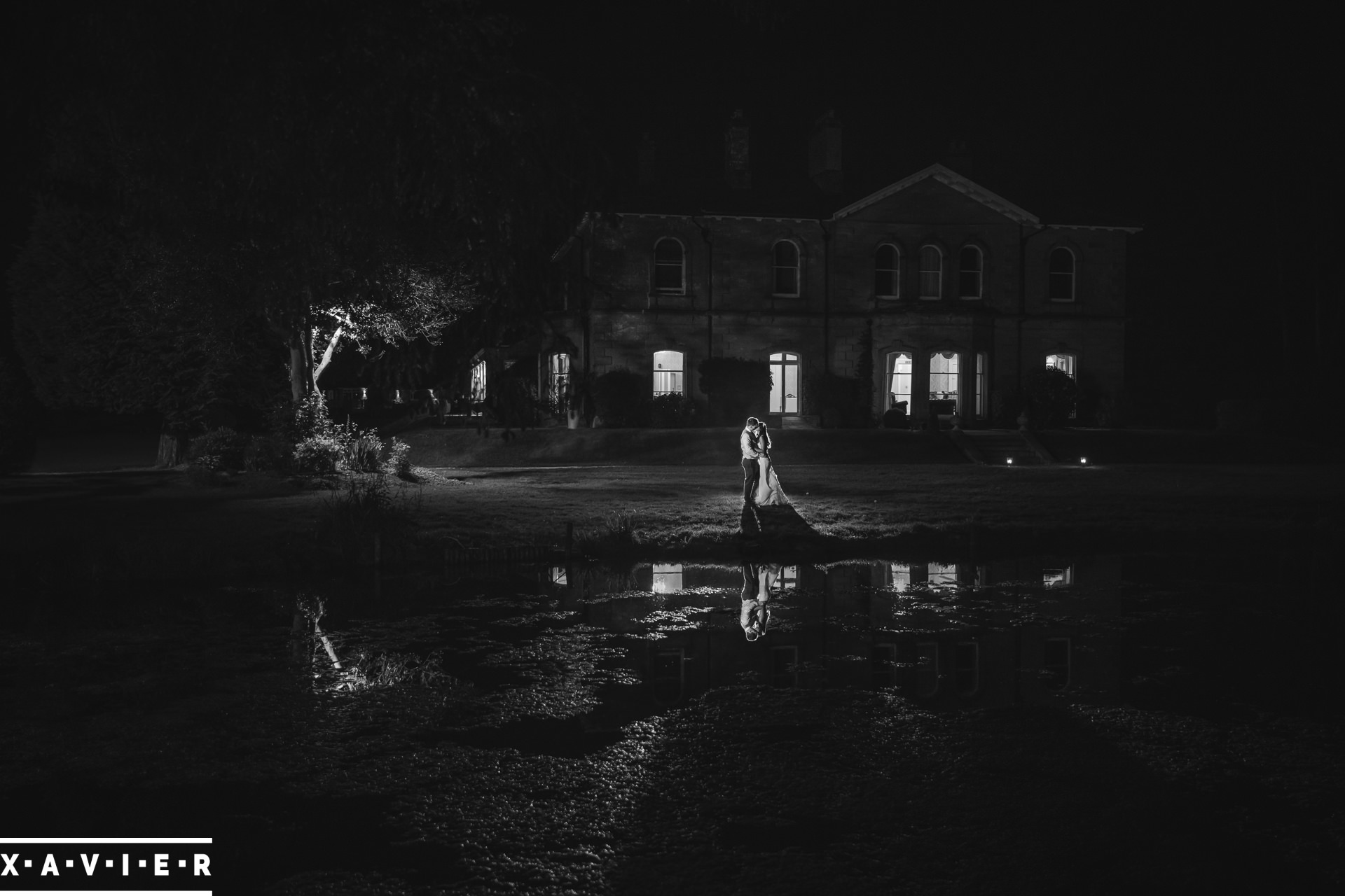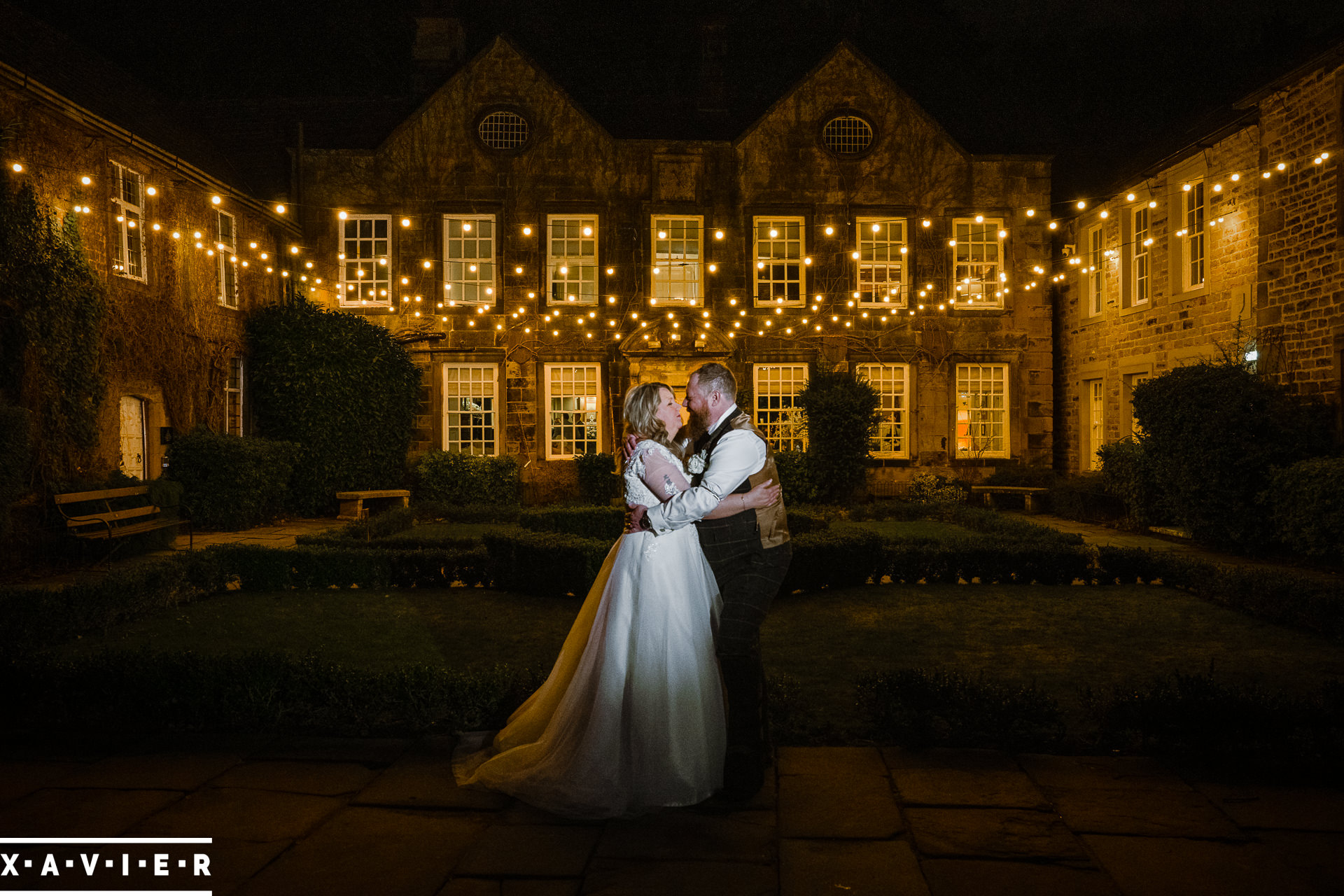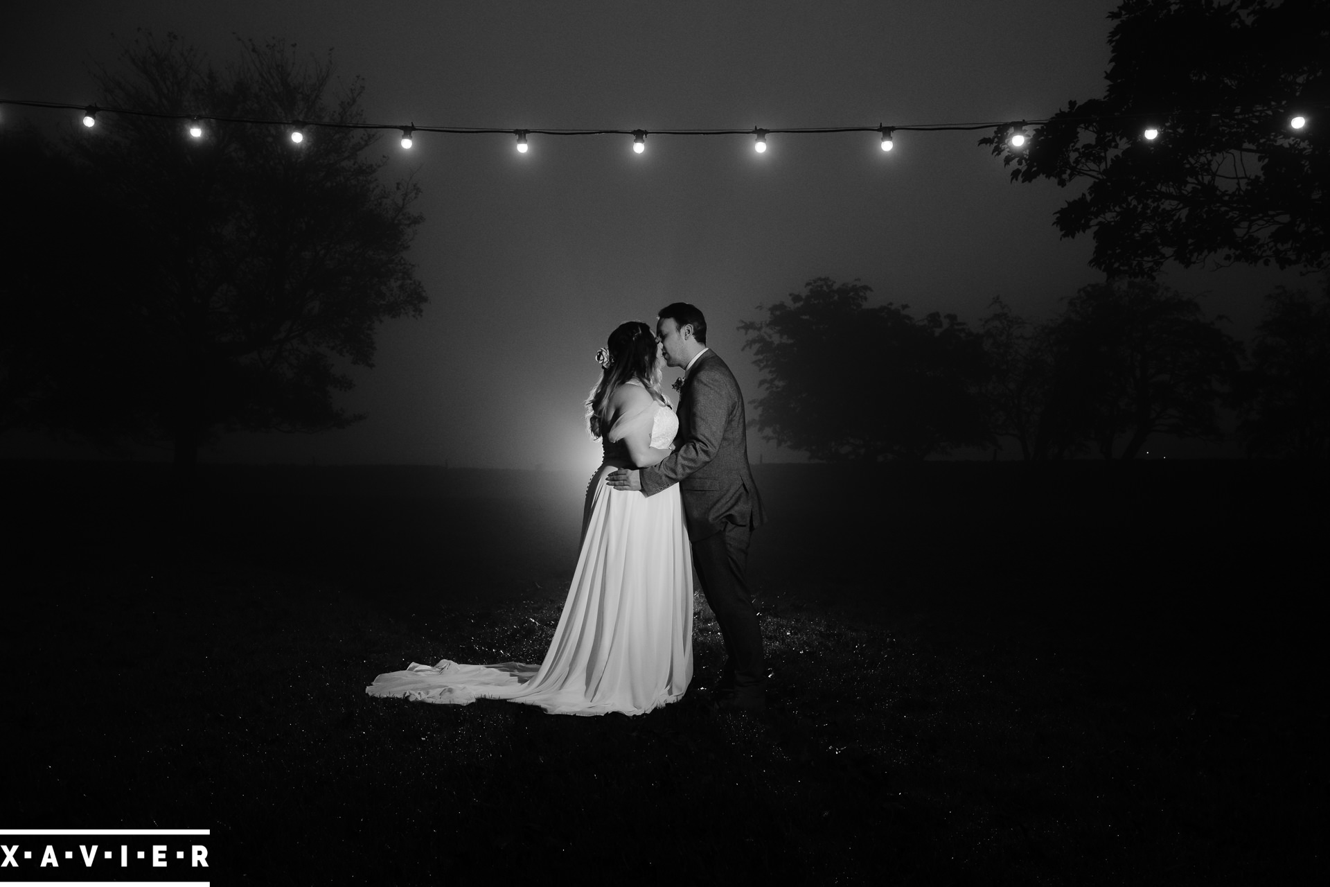 Whether your wedding day brings a stunning sunset, or a vibrant blue sky, when the light falls I'll direct you for dramatic nightime portraits