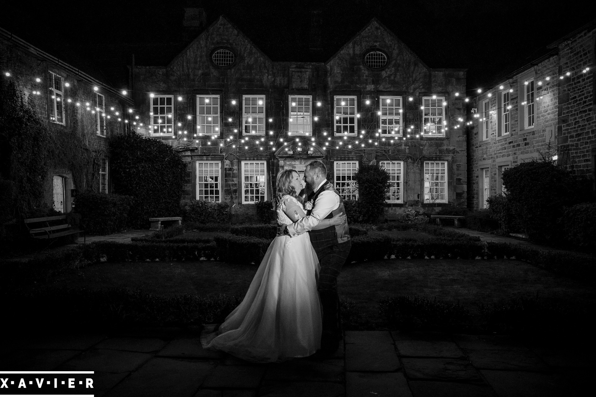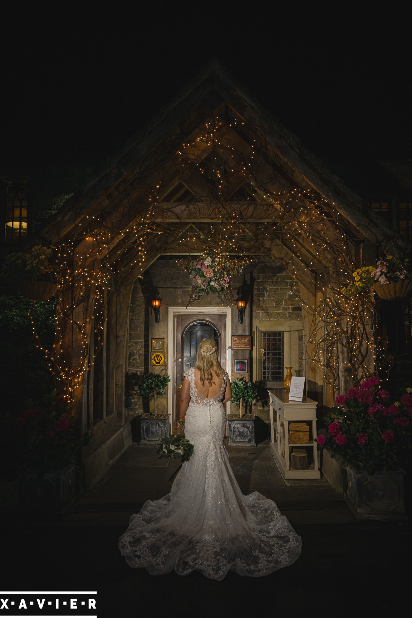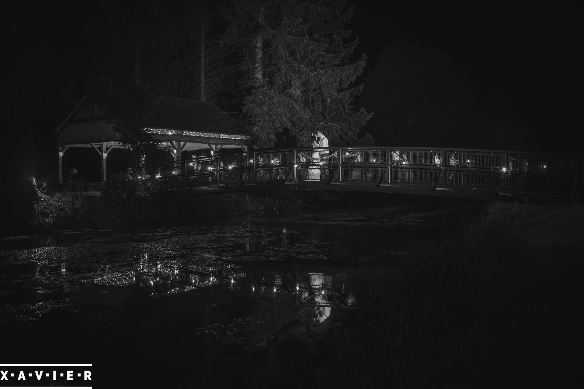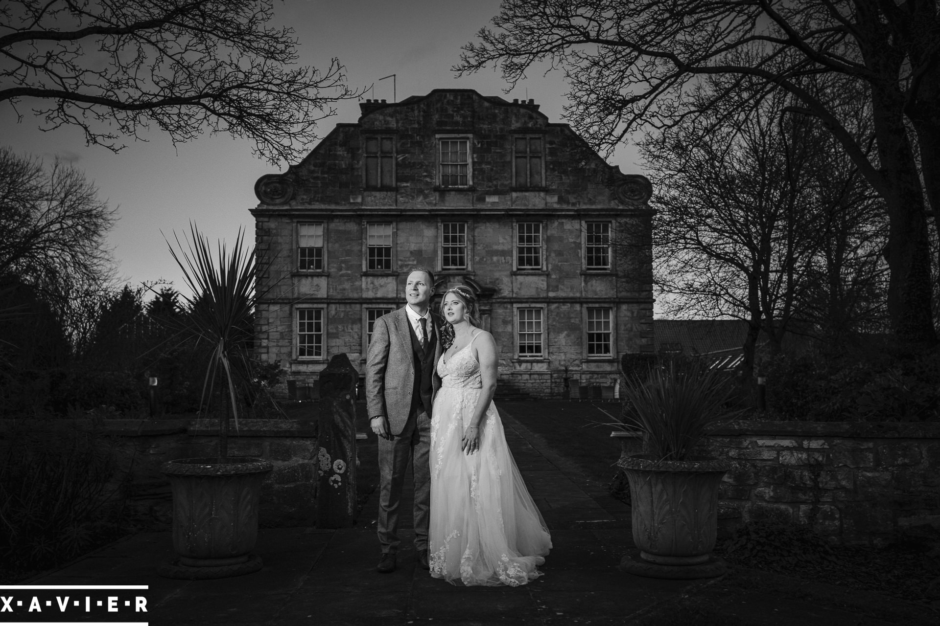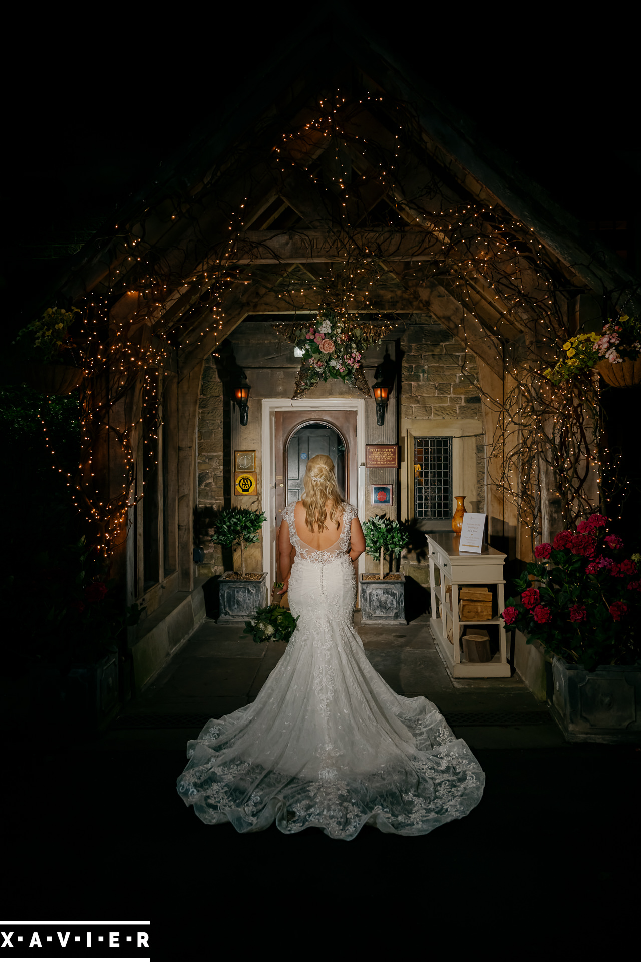 Whether your wedding day brings a stunning sunset, or a vibrant blue sky, when the light falls I'll direct you for dramatic nightime portraits