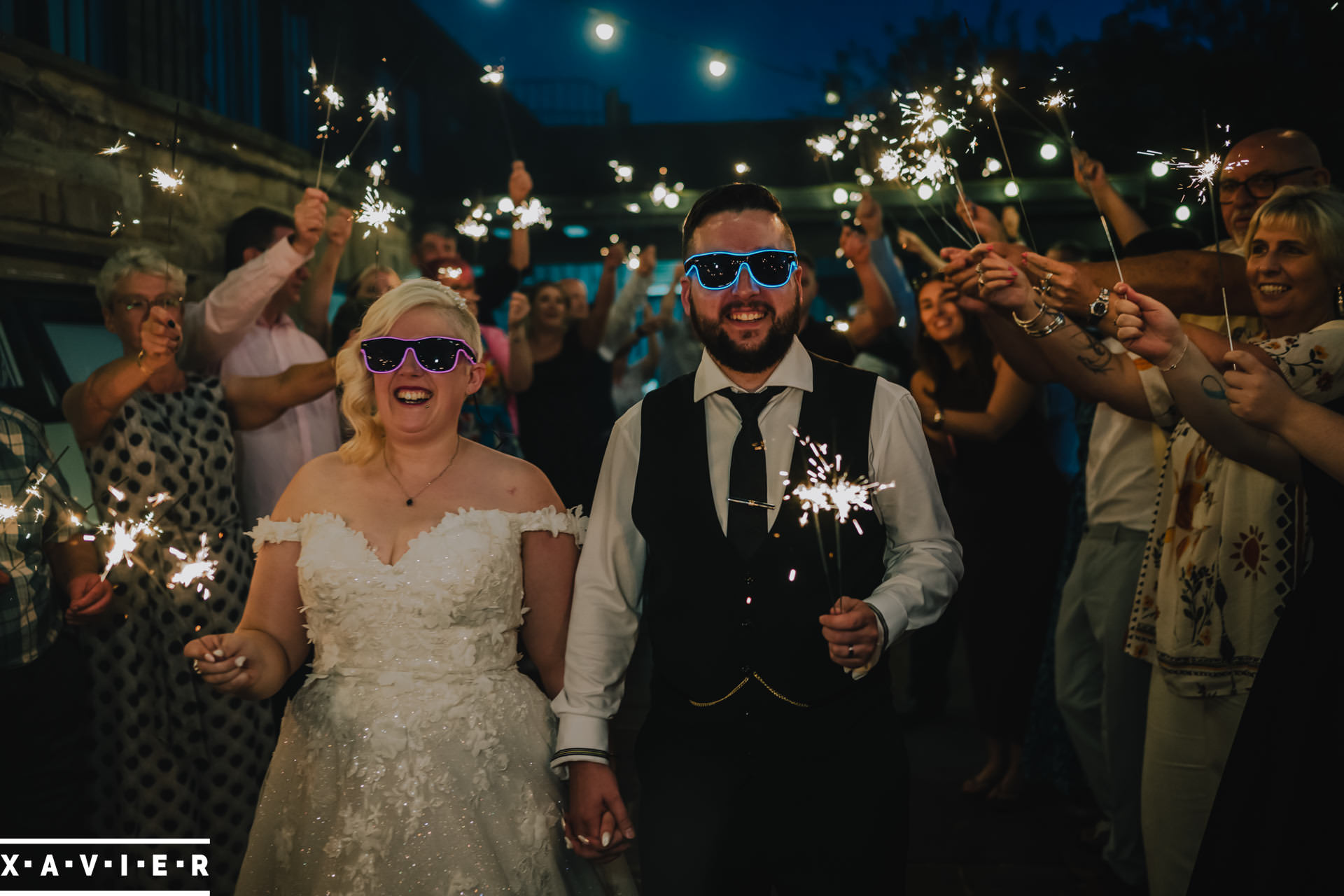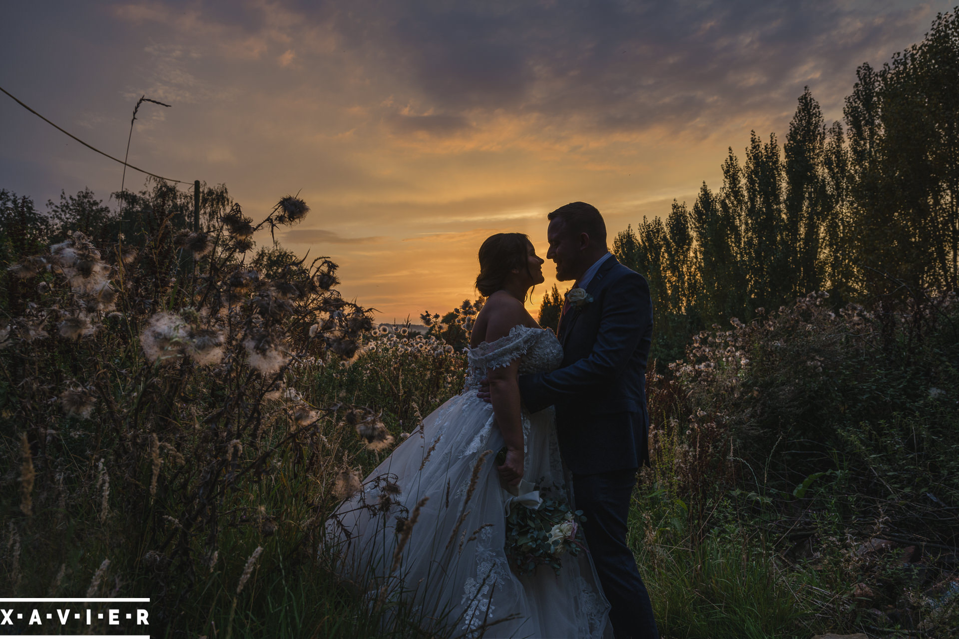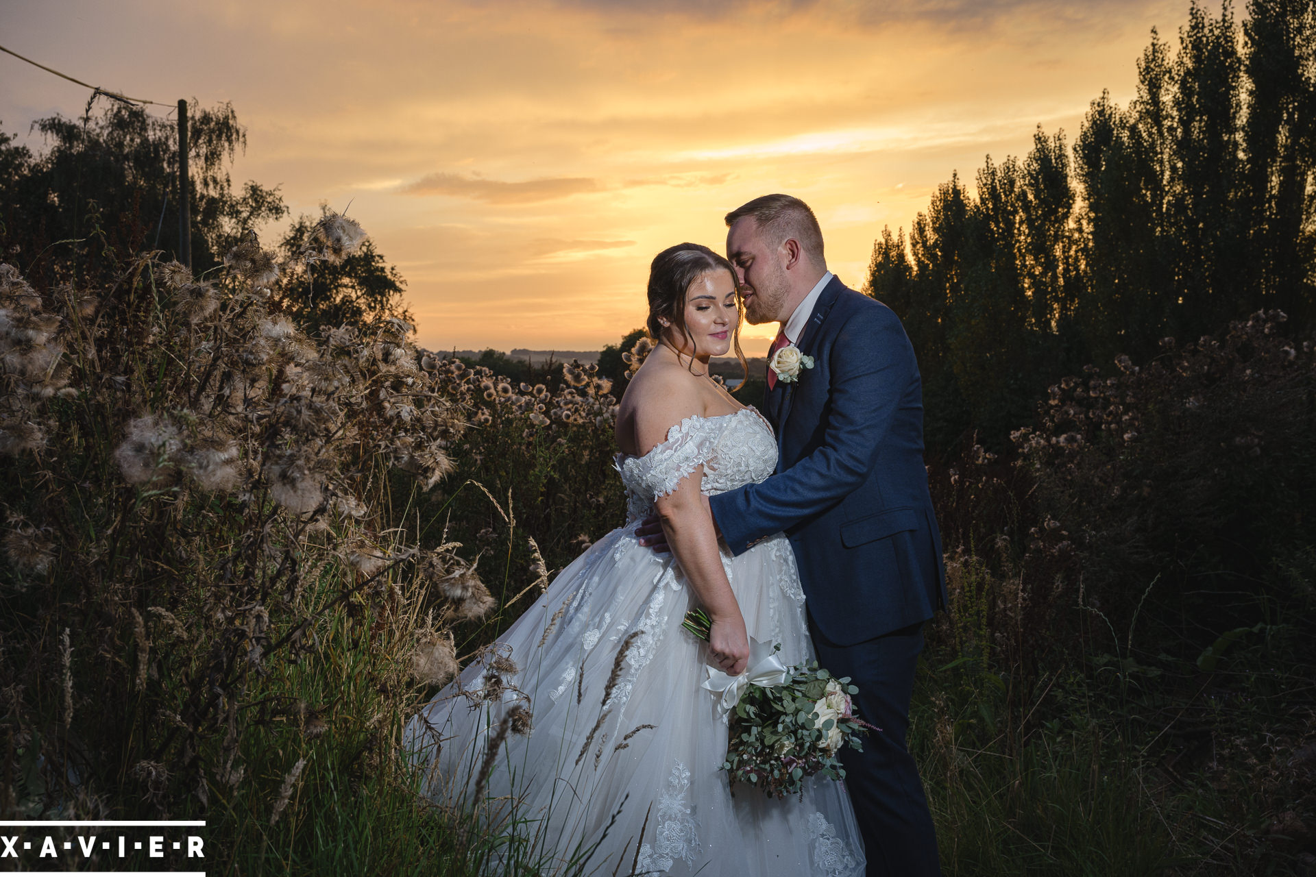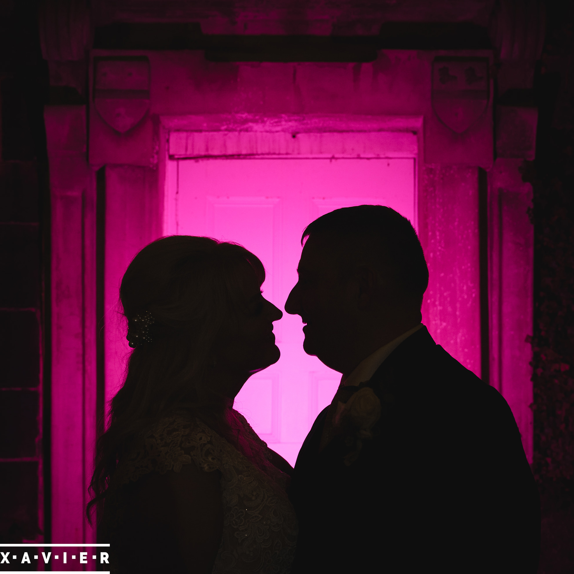 Whether your wedding day brings a stunning sunset, or a vibrant blue sky, when the light falls I'll direct you for dramatic nightime portraits