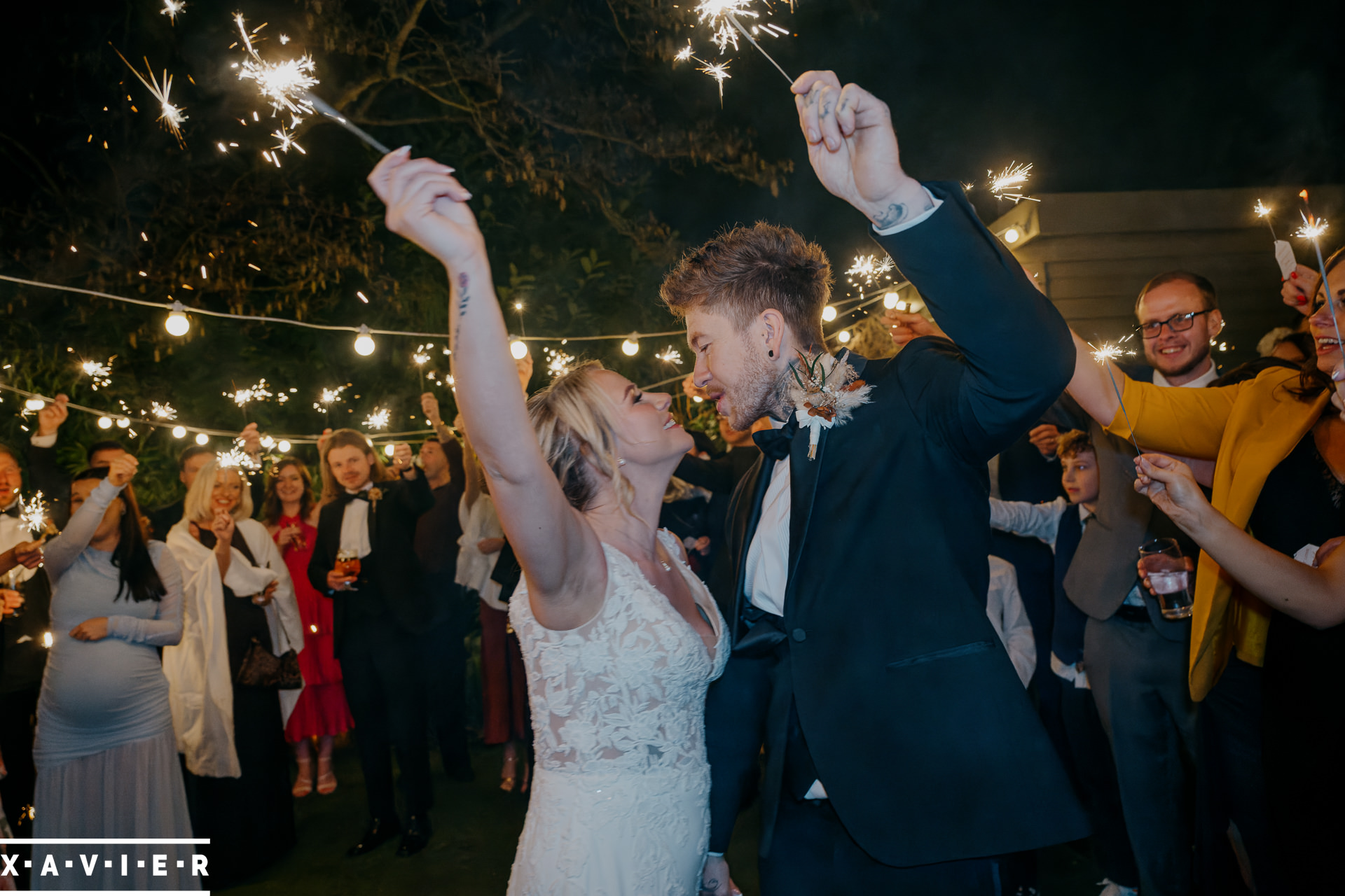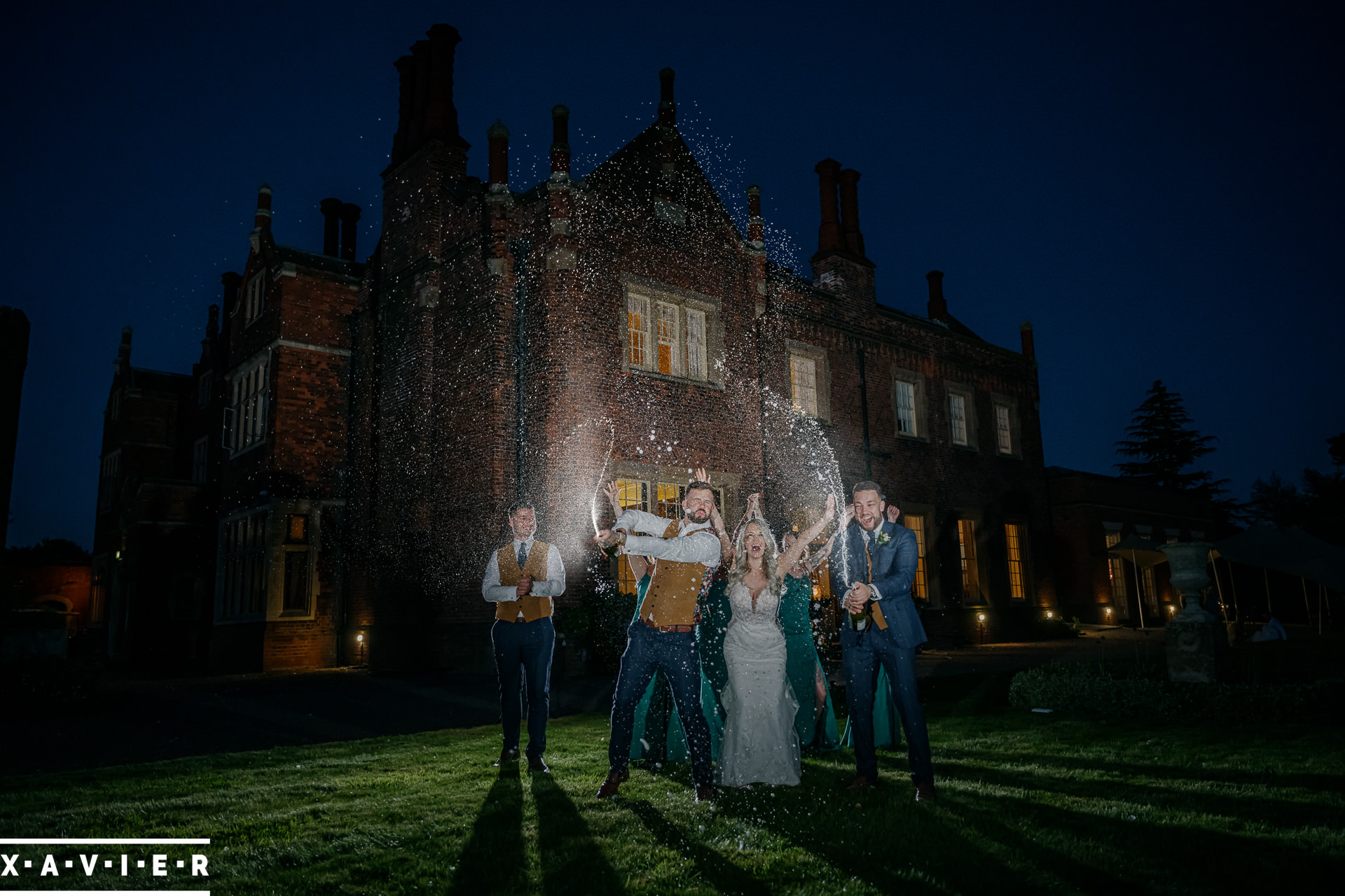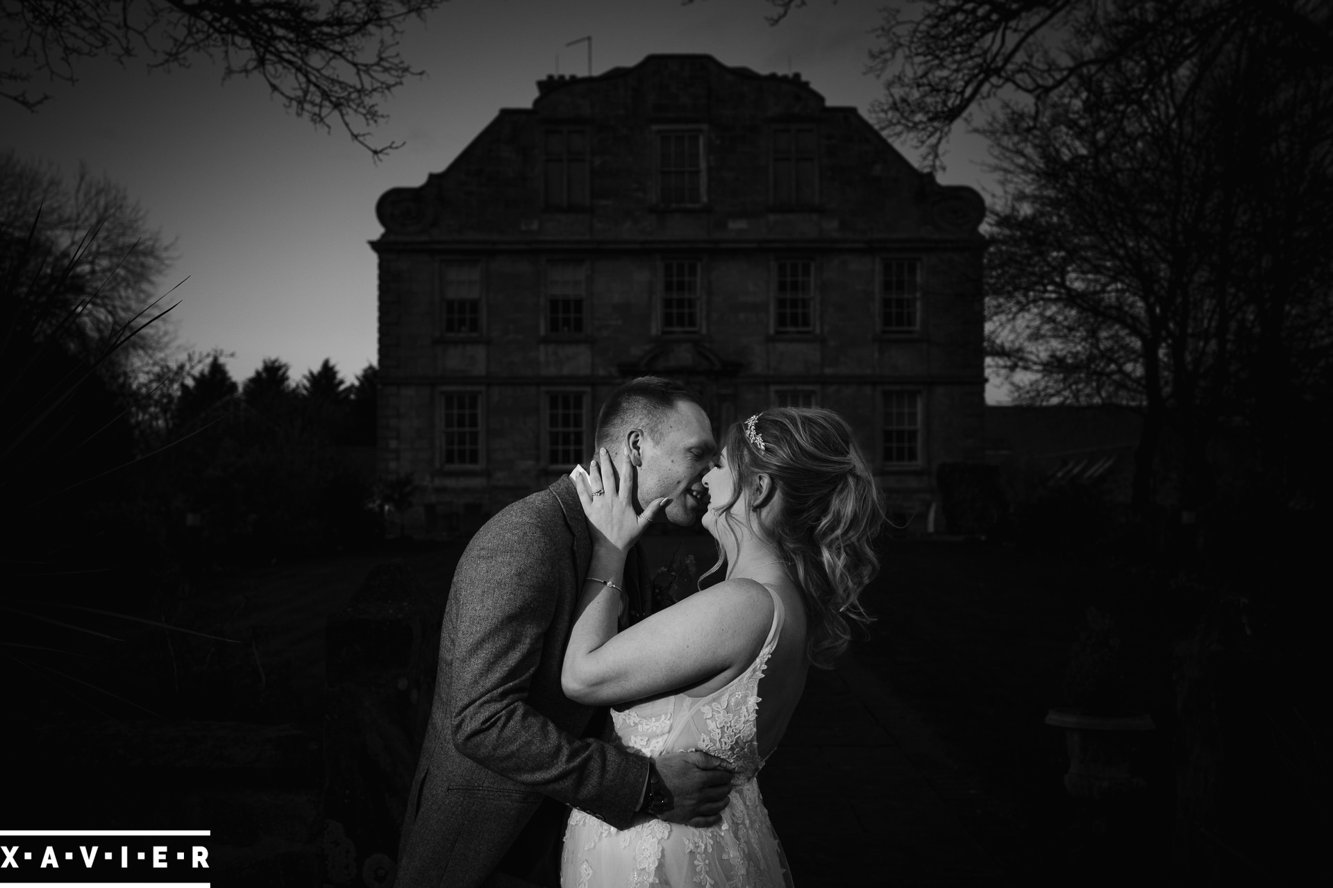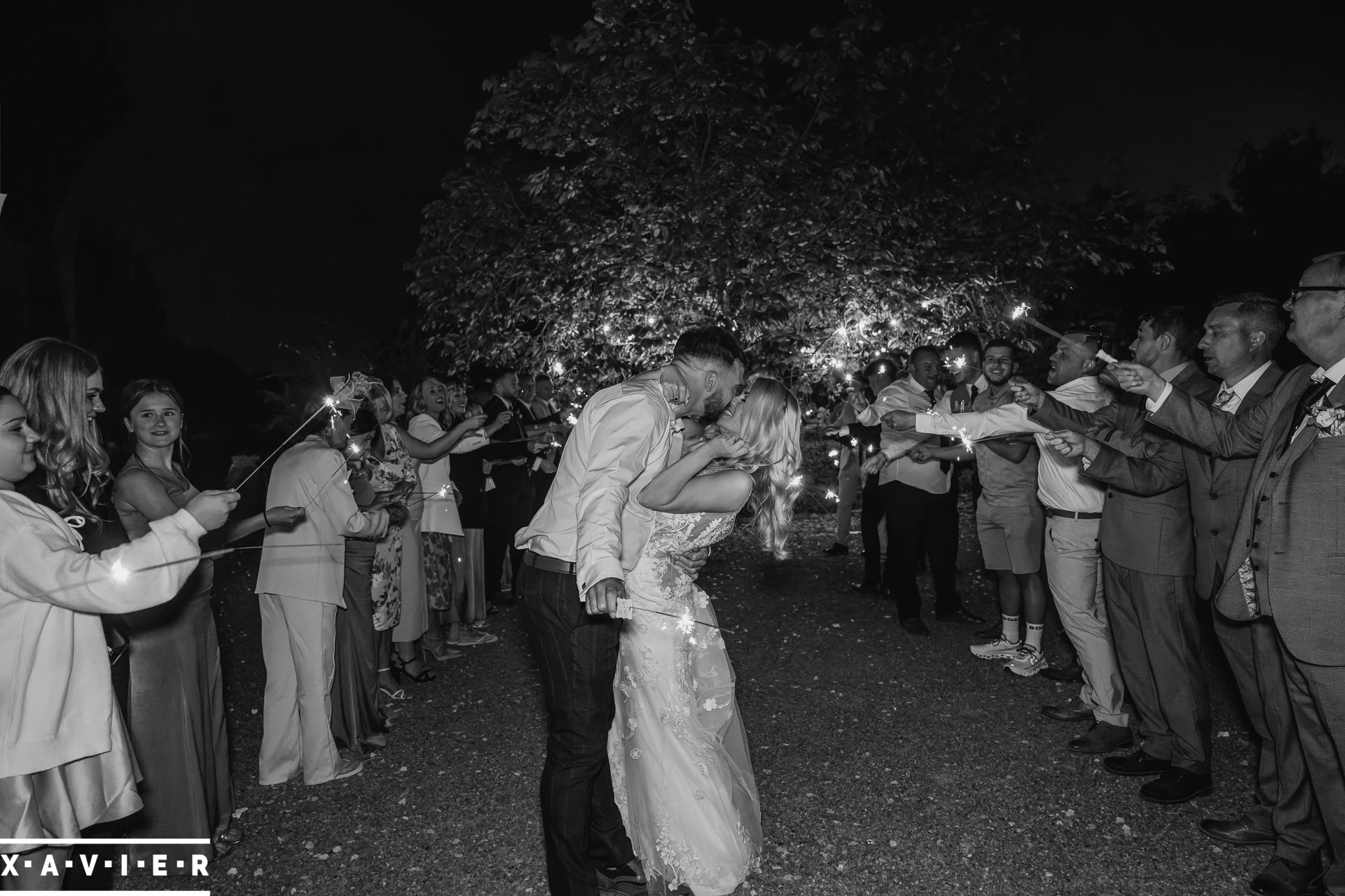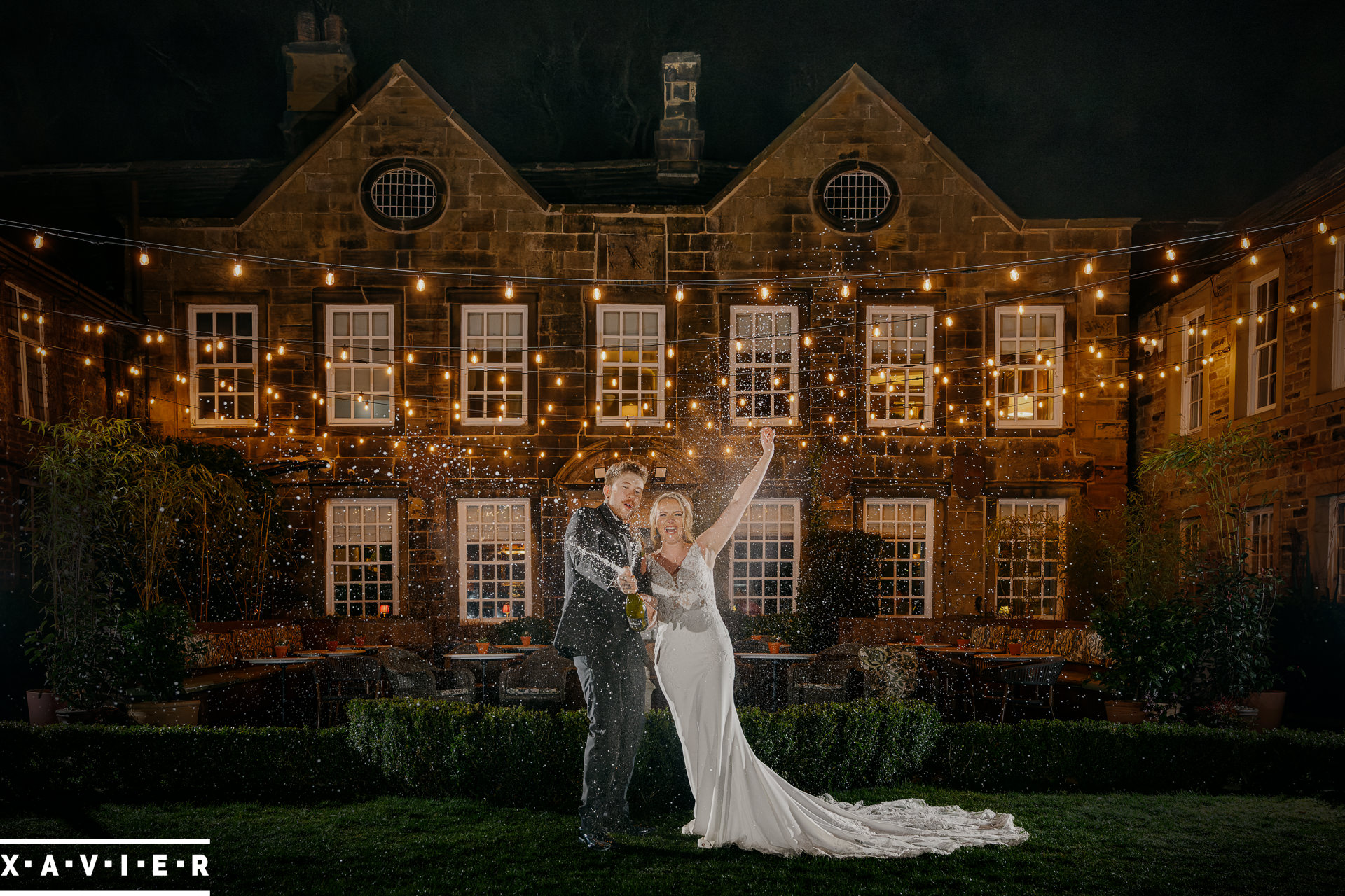Whether your wedding day brings a stunning sunset, or a vibrant blue sky, when the light falls I'll direct you for dramatic nightime portraits