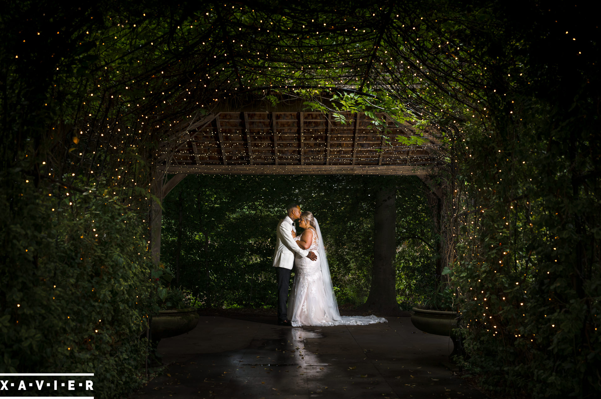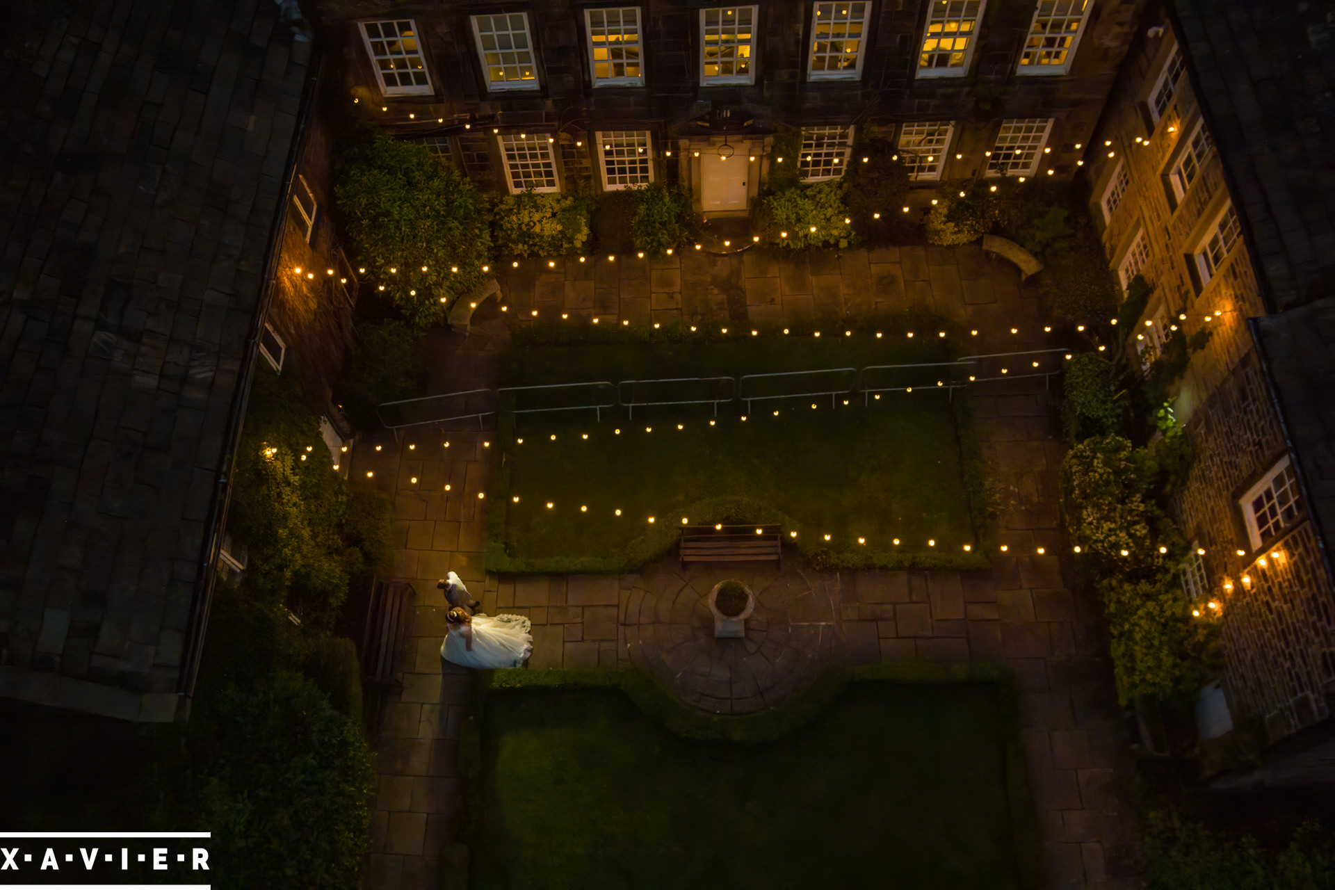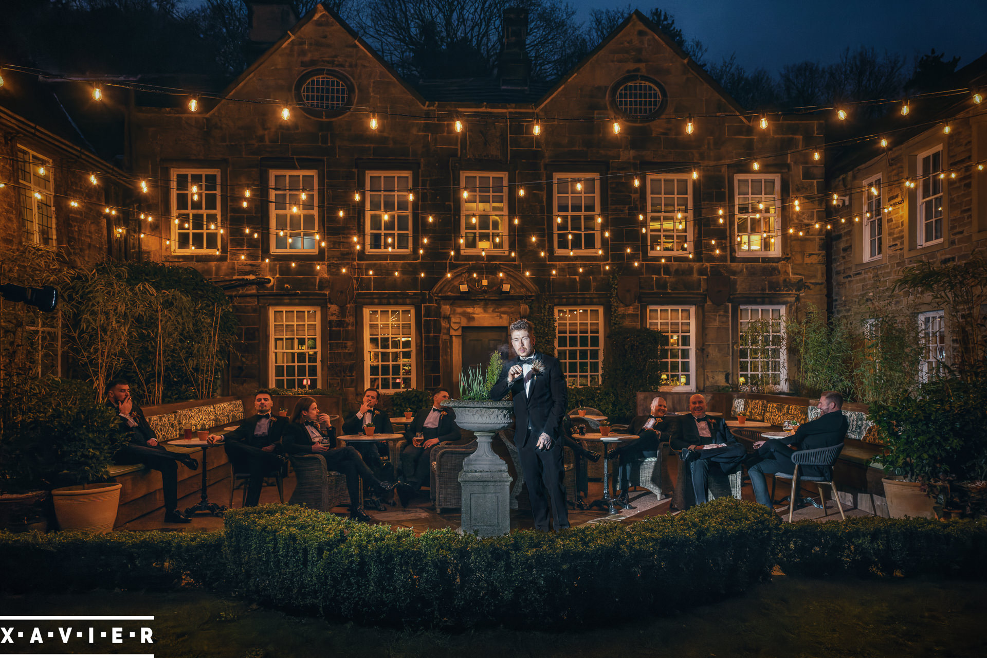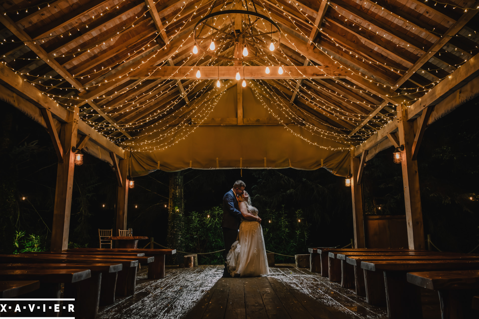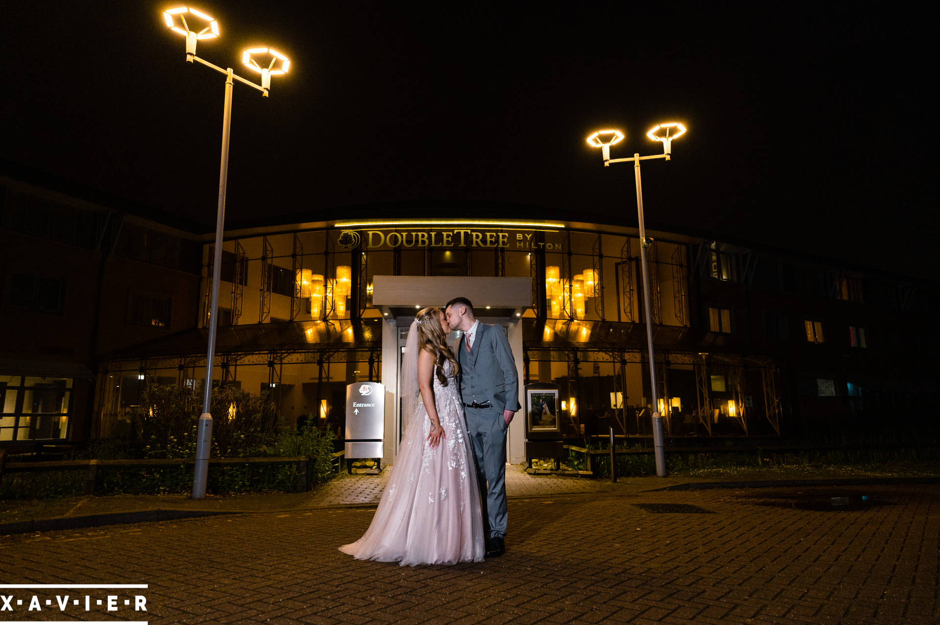 Whether your wedding day brings a stunning sunset, or a vibrant blue sky, when the light falls I'll direct you for dramatic nightime portraits